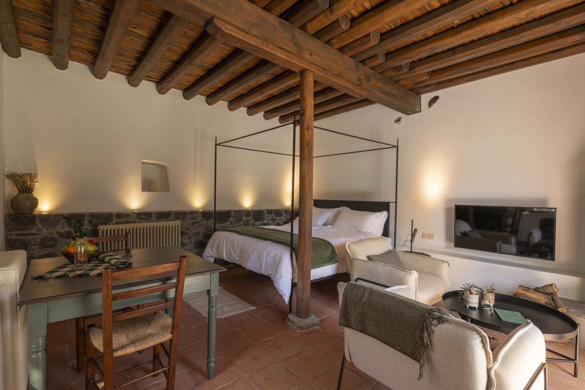 Discover comfort and convenience to the fullest by booking our Studio, a perfect option for couples and two-person groups. Relax and rejuvenate in your personal ensuite shower and bathroom, stocked with lavish shower amenities and soft towels. Unleash your inner chef in a fully equipped kitchen with an oven, an electric stove, and an espresso machine to kickstart your day. Entertainment is covered with Wi-Fi access and a 43” TV featuring Netflix. Relax outdoors on comfortable furniture, and rest easy on a king-size mattress while staying cozy year-round with central heating and air conditioning.